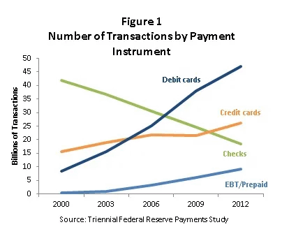 Thus, while debit and credit cards are growing strongly, and cash's share of total consumer transactions may well be declining, the 2012 Diary results suggest that cash still plays a very significant role in the consumer payments landscape. Looking to future potential changes in cash usage relative to other payment instruments, the Federal Reserve will continue its work to understand how the continued growth of debit cards, the expansion of prepaid cards among the unbanked, and novel P2P solutions may influence how consumers use cash, and the potential effects on the Fed's cash business.