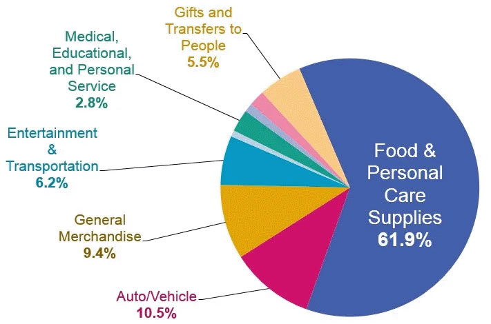 1 Food & Personal Care Supplies are defined in the Diary of Consumer Payment Choice as Fast food, food trucks, snack bars, grocery, pharmacy, liquor store, convenience stores, restaurants, and bars.