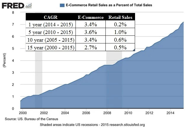 4 Economic Research, Federal Reserve Bank of St. Louis. (2015, October 1). E-Commerce Retail Sales as a Percent of Total Sales. (Off-site)