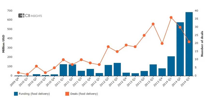 3 CB Insights. (2014, November 26). Led by International Players, Online and Mobile Food & Grocery Funding Smashes Previous Five-Year High in Q3'14. (Off-site)